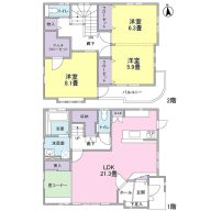 土地121.28㎡(約36.68坪)、建物69.13㎡(約20.91坪)